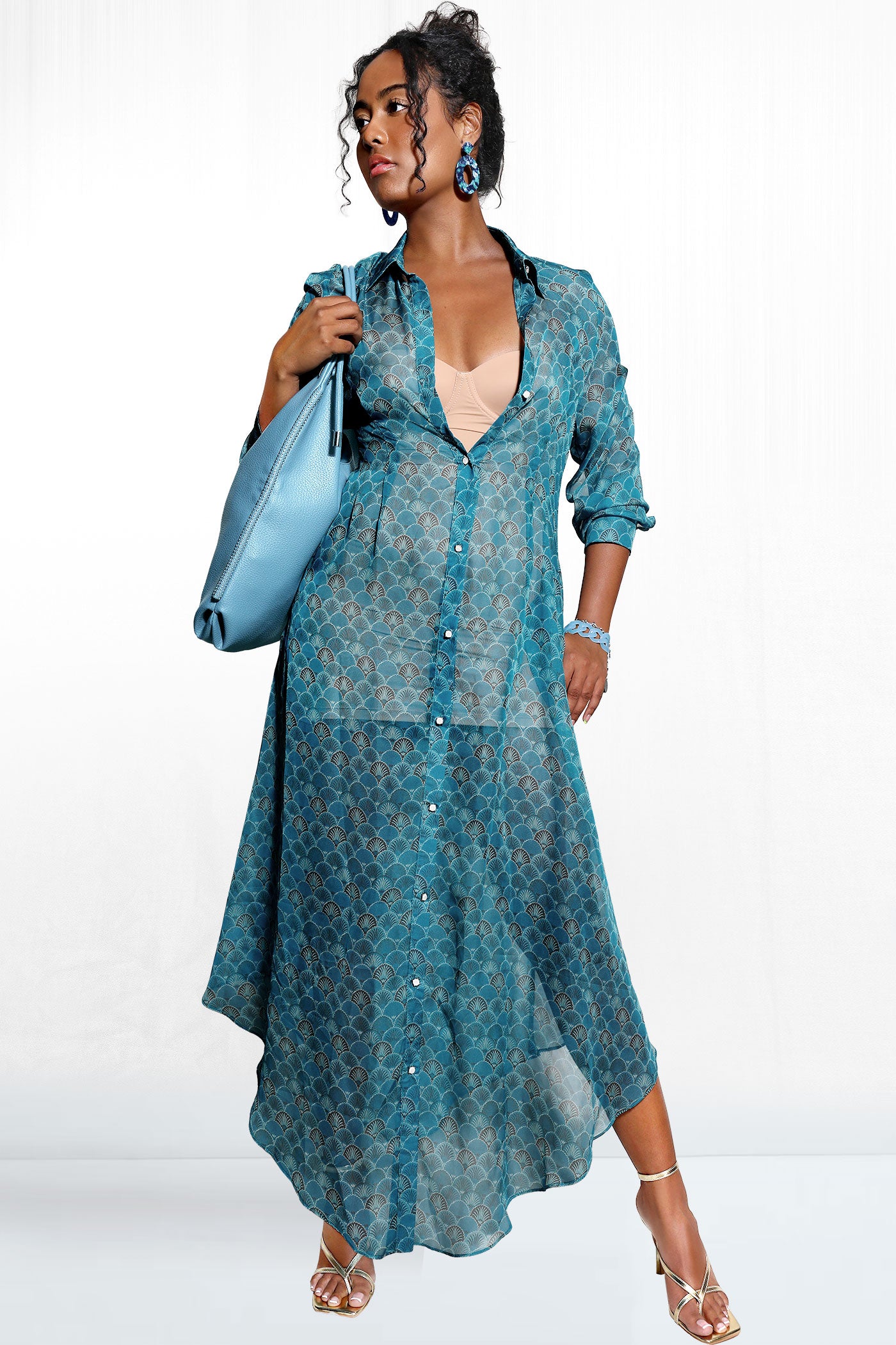 Get ready to rock the festival in style with our Coachella Vibes Sheer Dress! This stunning dress features a fitted waist and handkerchief hem, adding a touch of elegance. The button down front and long sleeves give it a high-end look, perfect for any event. Use it as a statement piece for brunch or dress it up for a night out. Embrace the festival vibes!