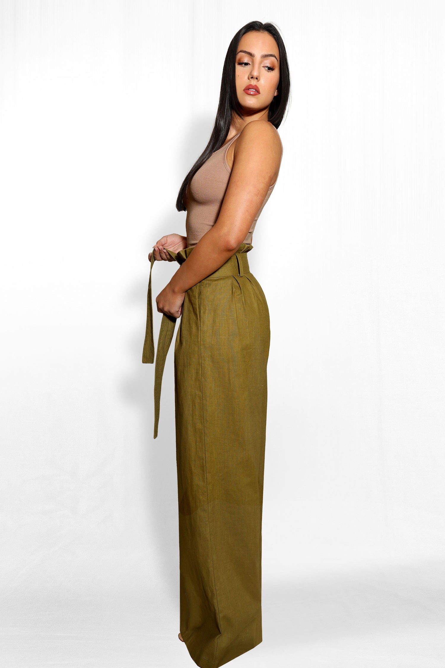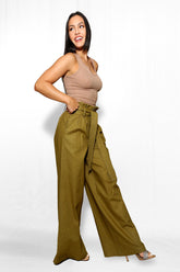 - Paper bag waist, wide leg
