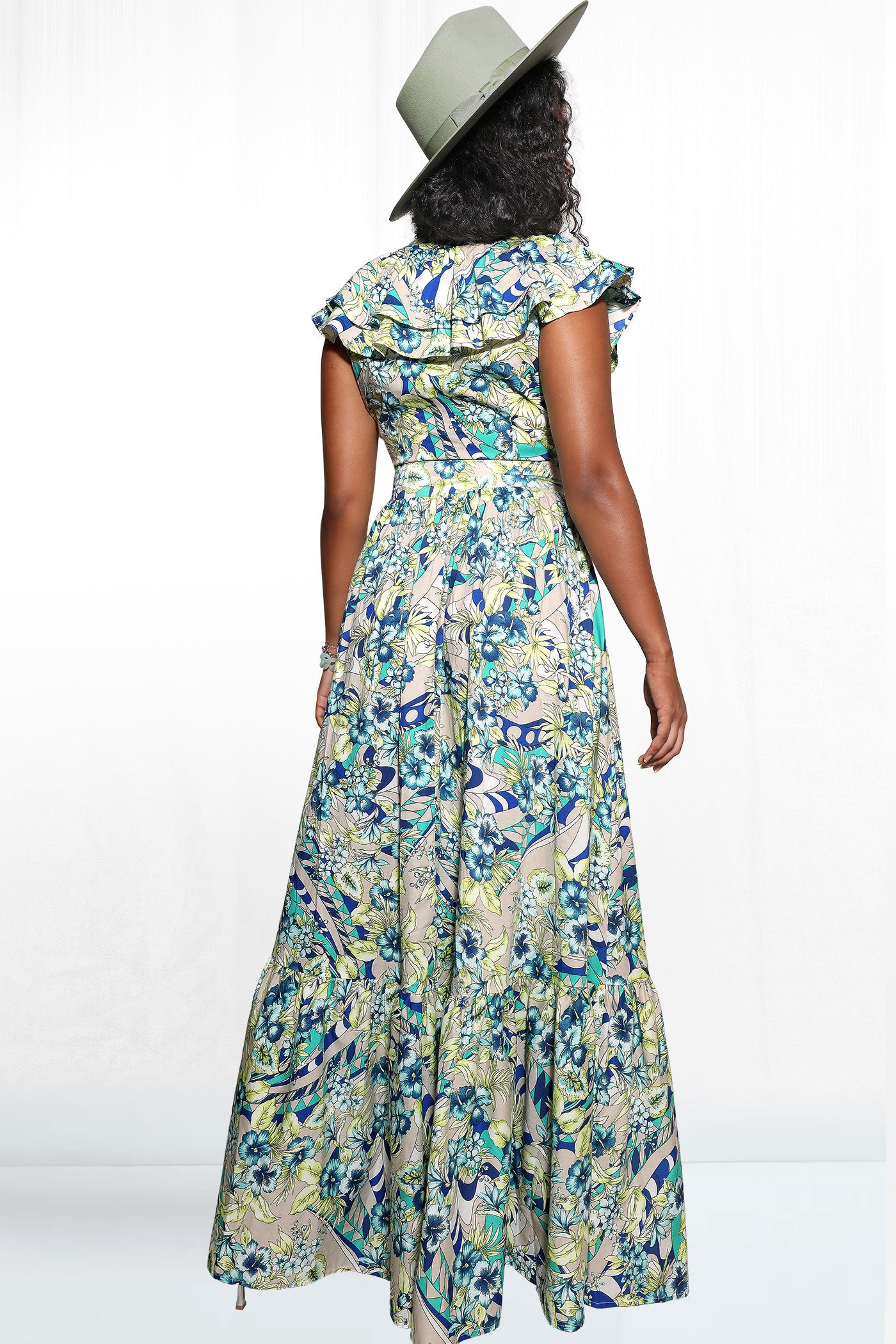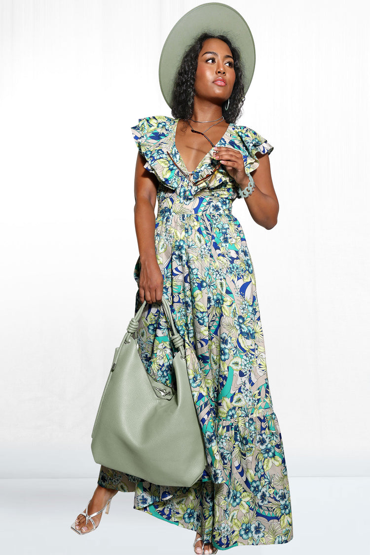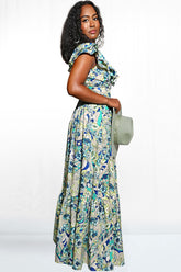 The Daytona Beach Ruffle Dress effortlessly transitions from day to night, making it perfect for any occasion - from beach dinners to weddings and parties. Its maxi length adds a touch of elegance, while the ruffle detail adds a playful and feminine touch. This dress is a must-have for anyone who values versatility and style.