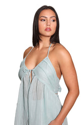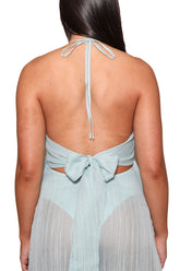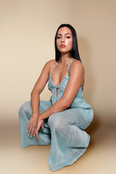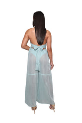 Lilyana Flowy Jumpsuit is the epitome of elegance and sophistication. Crafted exquisitely from sheer fabric, this jumpsuit features a flowy wide leg pant, halter neck, and ties in the back to create an aura of tasteful allure. The front tie on the bralette adds subtle class, while an internal bodysuit provides an extra touch of synched-in style. Finally, a unique stripe design completes the look of refined femininity.
