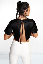 Sophisticated and stylish, our Poppy Crop Top is the perfect everyday top for a confident look. Crafted from super silky material, the timeless tie-back style is detailed with structured short sleeves, a crew neck and breast darting for a perfect fit. Elevate your wardrobe while exuding luxury.