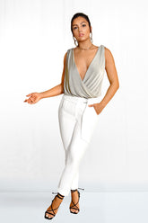 Look sensational in the Slate Plunge Bodysuit. Crafted from a lightweight fabric, this luxurious bodysuit features a deep v plunge neckline, loose fit and sleeveless design for a timelessly stylish look. Its snap seat closure and deep v plunge back add both practicality and sophistication to this stunning piece.