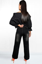 Take a bolder approach to your wardrobe with our Wide Collar Button Down Cuff Top. Crafted from structured cotton, this off-shoulder top features an oversized collar, intricate cuff design featuring a button closure and a timeless button-down silhouette, perfect for any outfit. Make a sophisticated style statement with this elegant and refined creation.