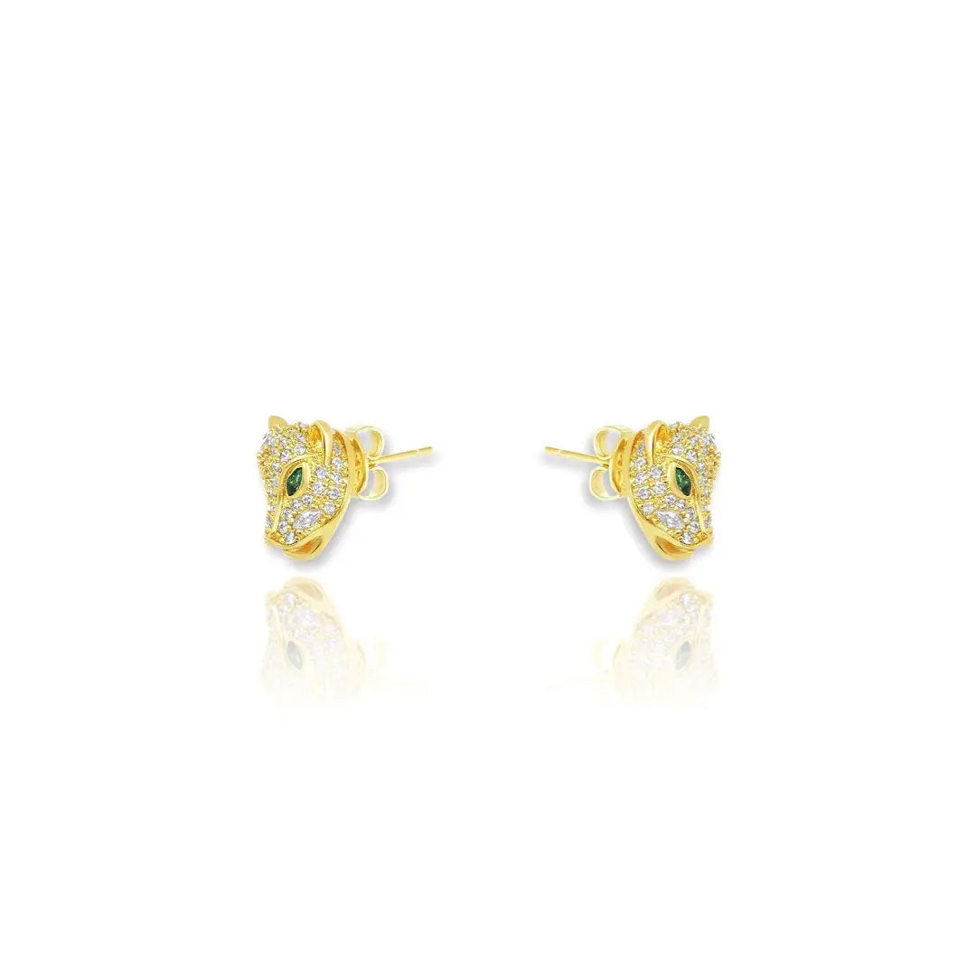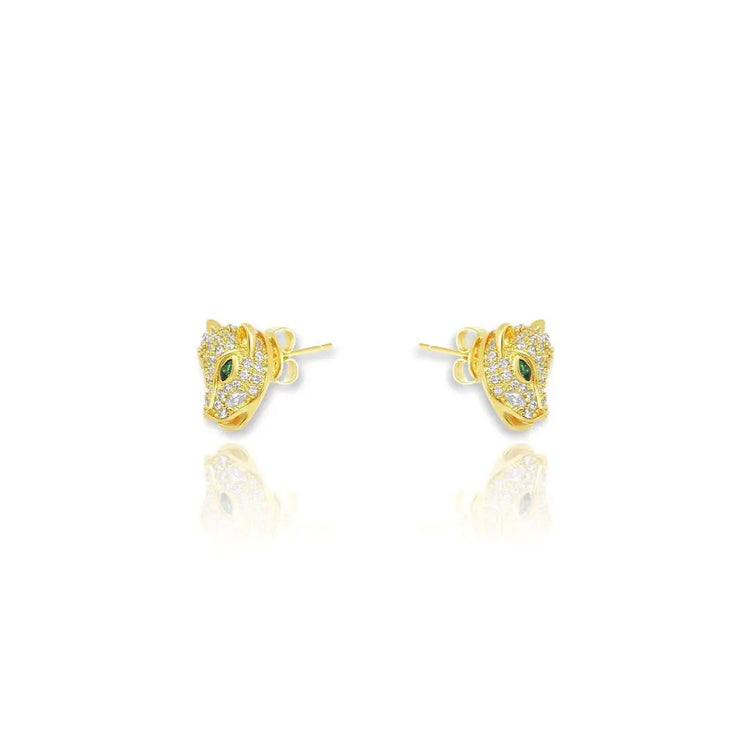 CZ Diamond Panther Stud Earrings