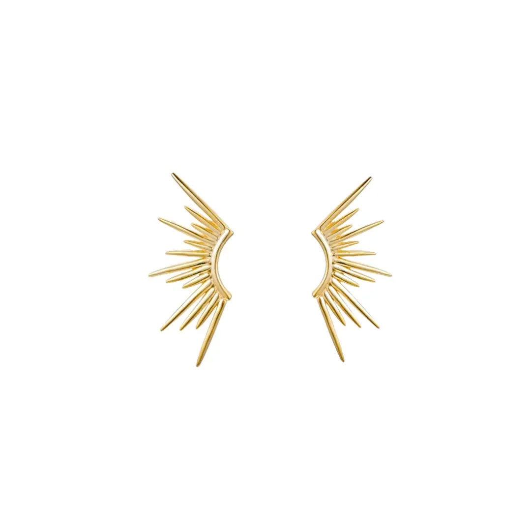 Delicate and chic, these sun shape spikes studs are gently curved to follow the shape of your ear. Instantly enchanting thanks to their elegant, textured shape and sparkling look, they will make an even greater impact when combined with matching styles. Gleaming spikes dazzle on post earrings that complete your look in a radiant way!