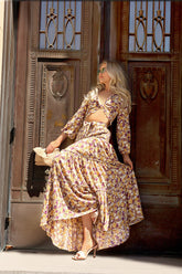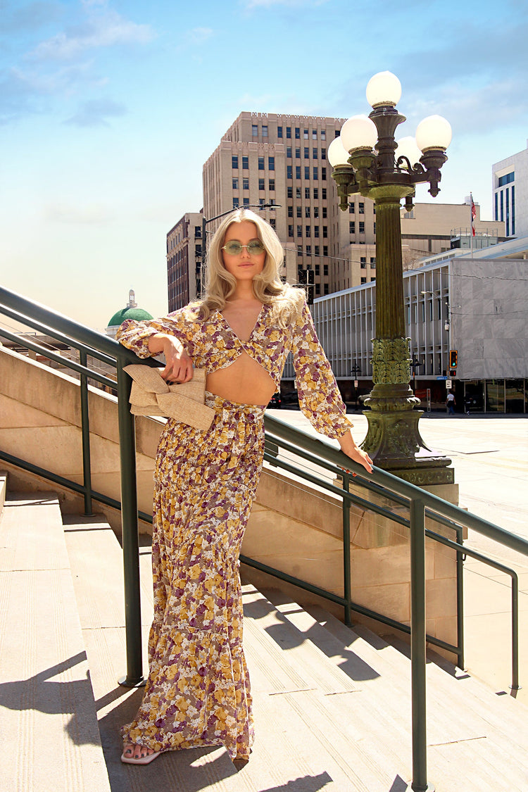 This Sweet Lavender Smocked Skirt is an elegant addition to your wardrobe. Crafted with an ultra lightweight purple and pink floral fabric, the maxi-length skirt is full bodied with layer ruffles and tiers, and the smocked waist with ribbon to synch creates a sophisticated silhouette. Experience an exquisite feel with each wear. Dress up or down pair with a tee, tank or our matching Sweet Lavender Floral Top.