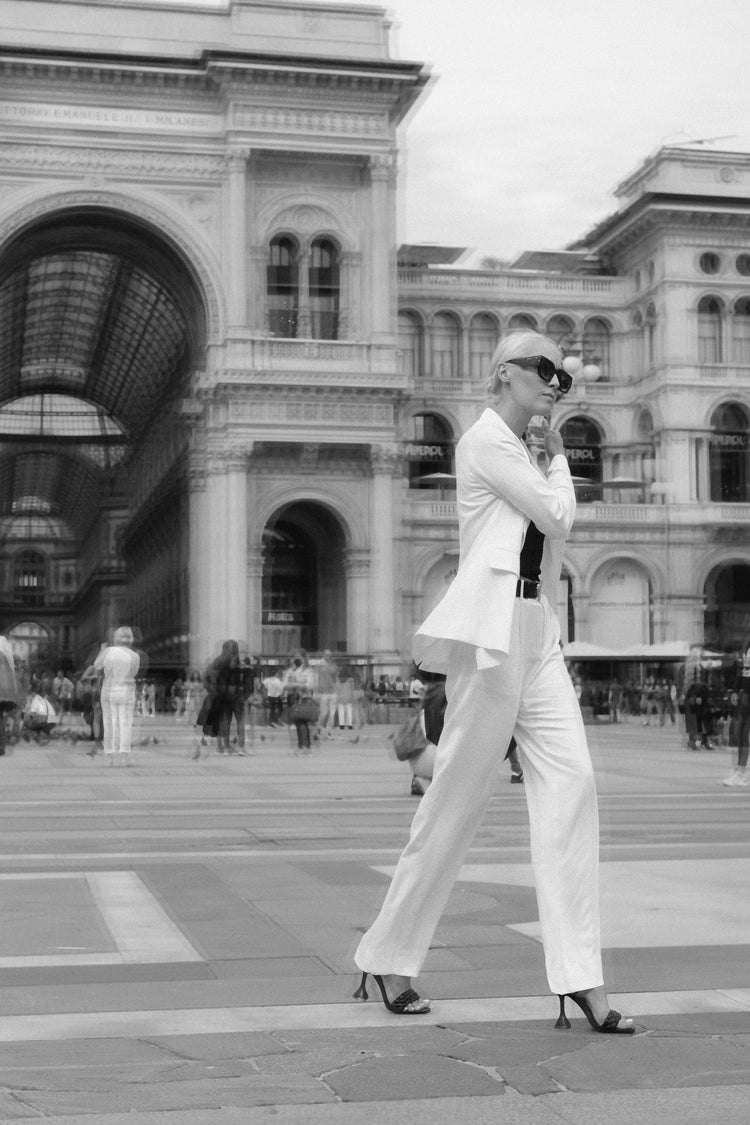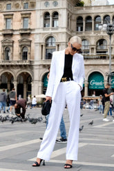 Experience the elegance of the Veronique White Blazer, crafted from a luxurious soft fabric for ultimate comfort. This mid-length blazer has a sophisticated one button cut and back vent for a tailored fit. Flap pockets and button details on the sleeve give a sleek finish, while the matching Veronique Pleated Pant offers the perfect accompaniment to create an instantly polished look.
